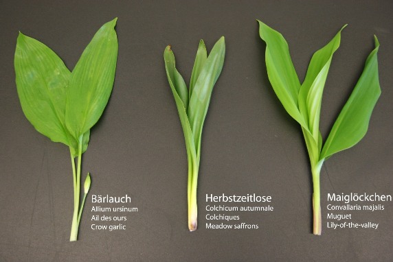 Confusion possible avec le muguet (jeunes pousses enroulées, pas de pétioles bien marqués) ou les colchiques (feuilles coriaces sans pétioles). On peut se fier à l’odeur.