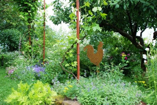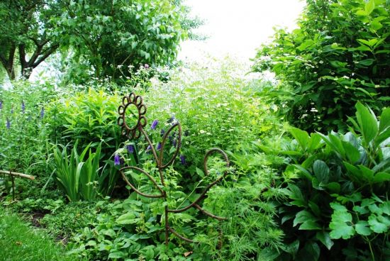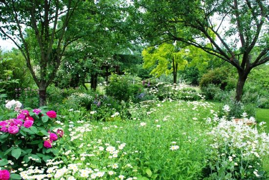 Camomilles, ancolies, juliennes, coquelourdes, campanules et pieds d'alouettes se ressèment dans les plates bandes, créant des ambiances au charme naturel. Toutes ces plantes prospèrent sans pesticides (chimiques ou bio) dans un jardin grouillant de vie. Suite...
