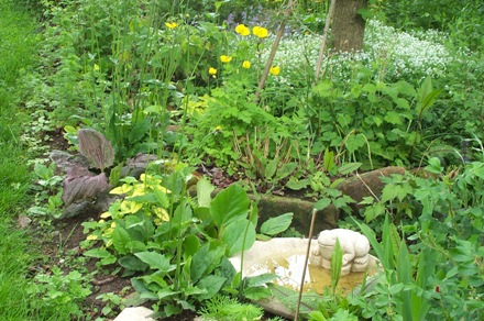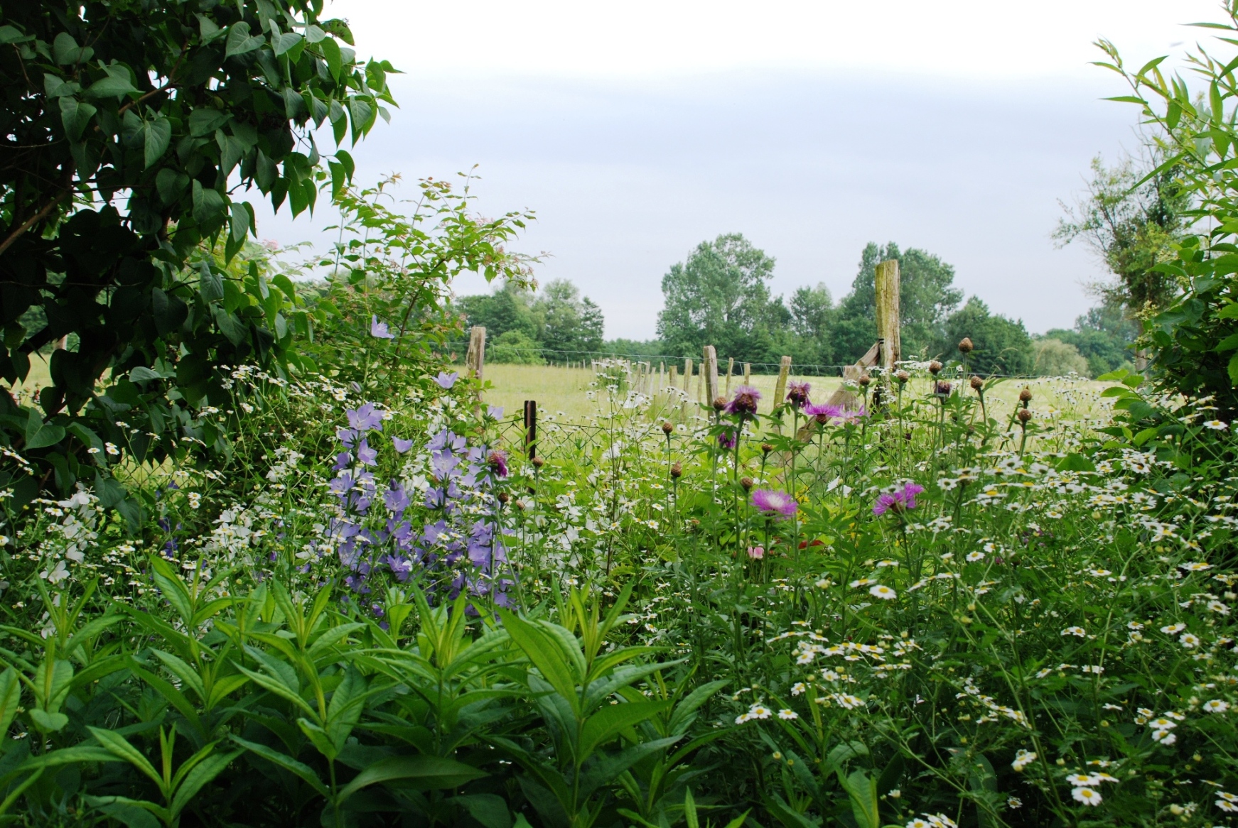 La flore sauvage locale est bien représentée - sureaux, noisetiers, érable champêtre, aubépine, saules têtards, ail des ours, aspérule odorante, cerfeuils sauvages, anémones, marguerites et amourettes.